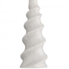 This contemporary lamp of ivory ricestone composite recalls the natural lines found inside a seashell. Sculpted from its sophisticated swirled base to a linear top, the Adriana’s form has a pleasing visual contrast. Topped with a tapered ivory shade lined in white cotton and accented with antique brass, it is finished with a taupe cloth cord and three-way rotary switch.