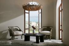 Laura Kirar’s playfully theatrical woven natural lampakanay palm forms – as seen with Mar Floor Lamp and Mar Pendant Chandelier - call to mind the classic era of the 1930’s in the coastal south of France. Held together by an iron rod finished in antique brass. Kirar pays homage to the details of casually curated Mediterranean interiors with their influences of aged formal furniture, the micro-climate combinations of tropical plants and pines, the passion for all things exotic from carved Spanish vargueño to primitive and sculptural African chairs