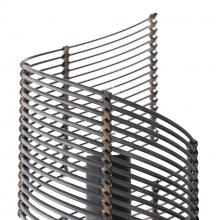 THE TAMARA SCONCE ADDS A LAYER OF TEXTURE AND MOVEMENT, WHILE PROVIDING SOFT ILLUMINATION. CRAFTED IN A SPIRALING RIBBON OF DARK GRAY-STAINED BURI MIDRIB, THE WALL LIGHT OFFERS AN ORGANIC MODERN TWIST. THE SCONCE IS FITTED WITH CANDLE HOLDER THAT HOLDS A CLEAR TUBULAR BULB ON EACH END, DIRECTING LIGHT ABOVE AND BELOW. FINISH WILL VARY.