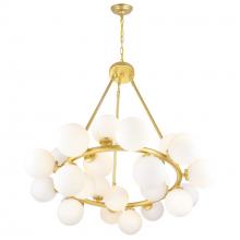 • A celestial light fixture that makes you feel clouds are over your head. with heavenly beauty, this white and satin gold chandelier is composed of 25 frosted glass globes connected to a luxe satin gold metal frame. The pendant drop measures 26 inches in di