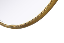 Bring vintage charm and refined craftsmanship to your space with this round wall mirror in a distressed antique brass finish. The hand-painted frame showcases ornate scroll and floral detailing, creating a timeless, old-world aesthetic. The beaded trim along the edge enhances the decorative appeal, making it an eye-catching statement piece. Crafted from resin with an MDF backing board, this mirror is lightweight yet durable. Designed for vertical hanging only, it includes a metal inset hanger for easy installation (hardware not included). Available in multiple sizes and in vintage bronze, this mirror is perfect for vanity stations, bathrooms, entryways, or living rooms, adding architectural beauty and a sophisticated touch to any space.