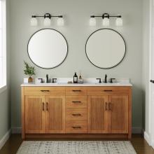 Opal glass shades provide a warm and inviting luminescence to the Corella Family of vanity lighting. The clean, linear fixtures are available in matte black, modern gold, or polished nickel finishes and create the perfect backdrop for the bottle-shaped shades. Whether it’s the 2- or 3-light option, these vanity lights deliver the perfect glow for any design scheme.