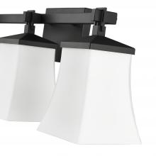 The Sonorra Family of vanity lighting combines modern styling with classic Arts and Crafts movement design details. Perfect for interiors from Asian inspired to ultra-modern, the square, white frosted glass globes are enhanced by stylish hooks and clean, angular lines of the fixture. These 1-light, 2-light, and 3-light vanity lamps are in matte black.