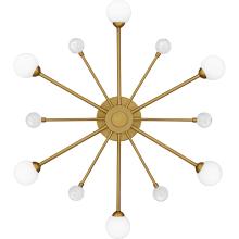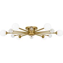 The Combe semi-flush mount light adds a modern touch to any room with its updated Sputnik design. Crystal balls accent the opal etched glass globes, creating a striking visual appeal and enhancing the overall elegance of the piece. Available in brushed gol
