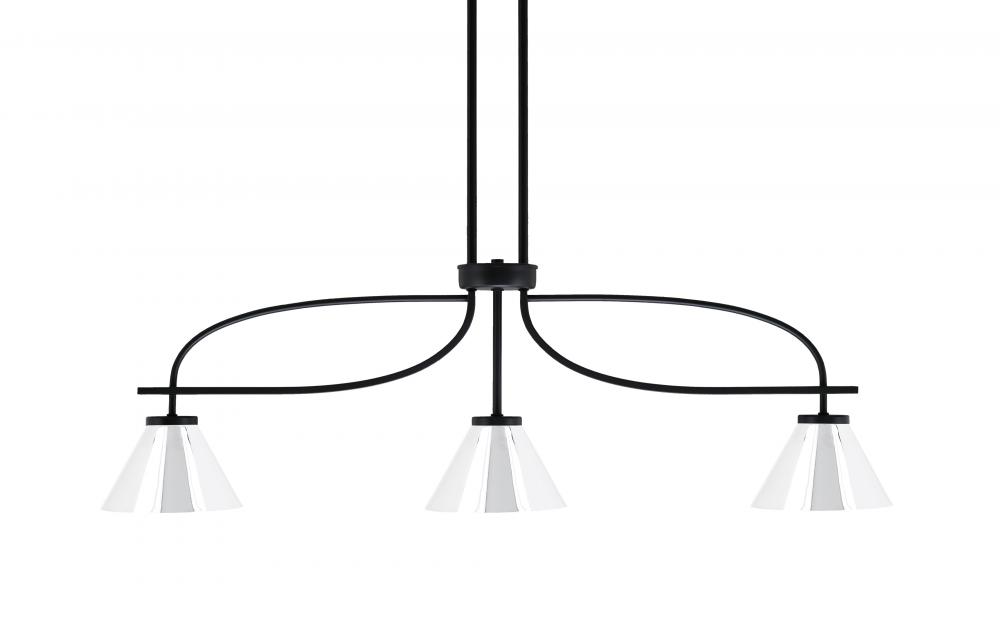 Toltec Lighting 3936-MB-421-CH Cavella 3 Light Island Light Shown In Matte Black Finish With 7 Chrome Cone Metal Shades