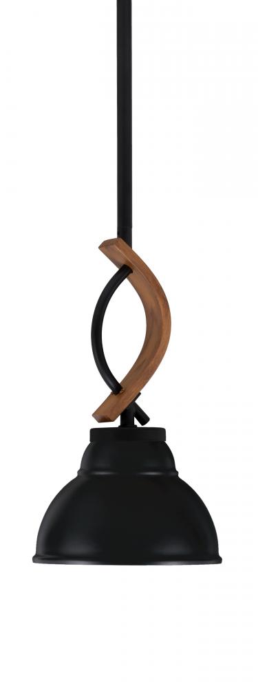 Toltec Lighting 2901-MBWG-427-MB Monterey 1 Light Mini Pendant Shown In Matte Black & Painted Wood-look Metal Finish With 7 Matte Black Double Bubble Metal Shade