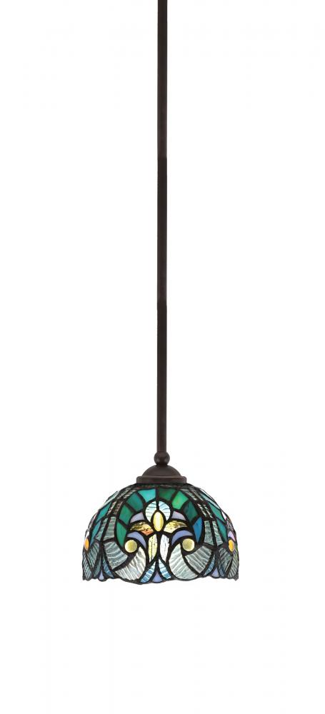 Toltec Lighting 560-DG-9925 Zilo Stem Hung Mini Pendant, Dark Granite Finish, 7 Turquoise Cypress Art Glass