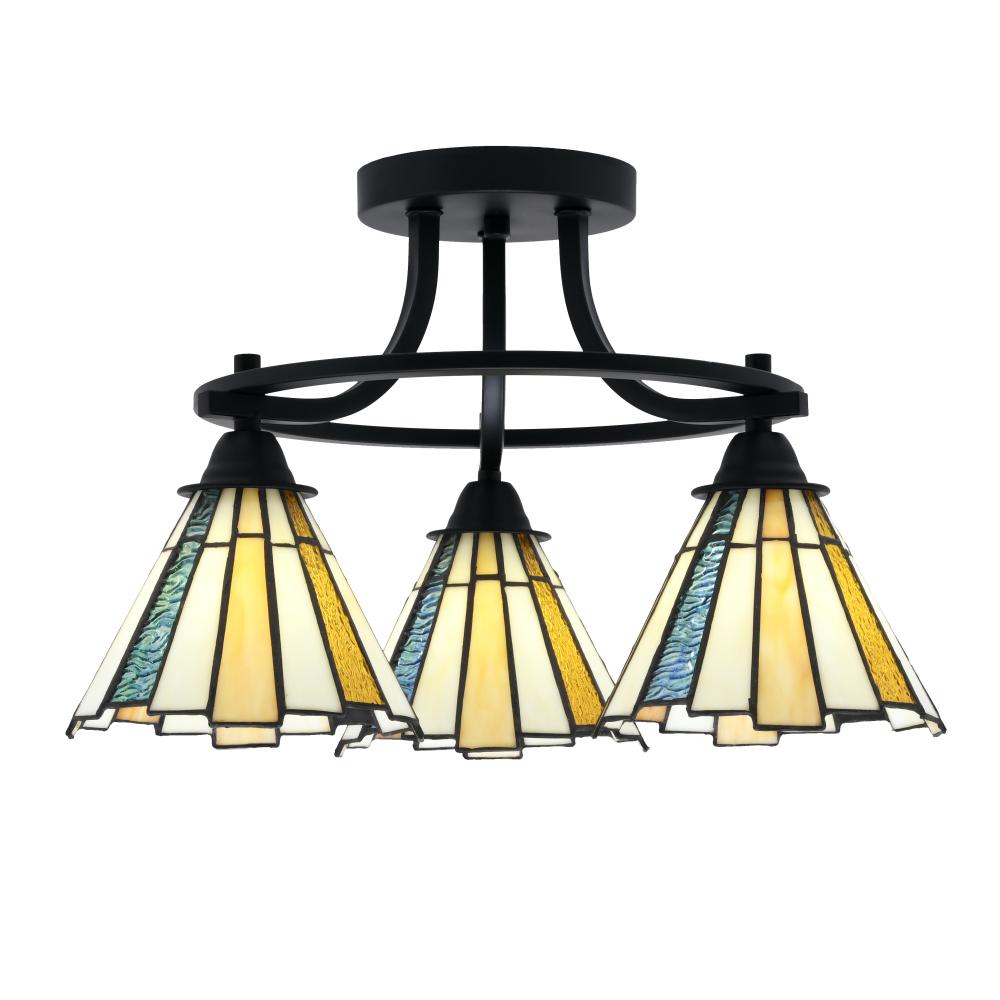 Paramount 3 Light Semi-Flush In Matte Black Finish With 7 Sequoia Art Glass
