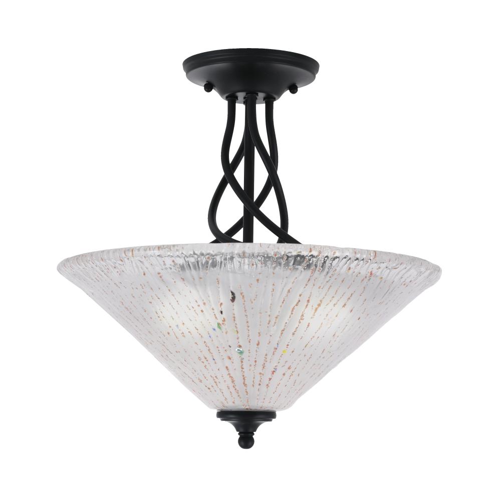 Capri 3 Bulb Semi-Flush Shown In Matte Black Finish With 16 Frosted Crystal Glass