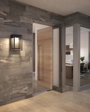 The Urbandale one light outdoor wall fixture in antique bronze creates a warm and inviting welcome presentation for your home's exterior. The Urbandale outdoor collection by has a modern design which features beveled edges achieved with the fine precision of crisp die-cast construction. Both incandescent and LED versions are available, and each offer slightly different aesthetic. The incandescent version is offered in the Antique Bronze finish which nicely contrasts with the Painted Burnished Brass finish on the squared-off candle holders and Clear Seeded glass to subtly obscure the light source. The LED version is offered in an Antique Bronze finish with Clear Water glass.