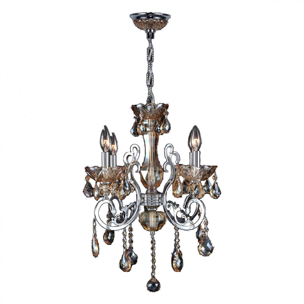 A luxurious piece for modern spaces, this stunning 4-light Crystal Chandelier only uses the best quality material and workmanship ensuring a beautiful heirloom quality piece. Featuring tapered scrolls, crystal bobeches, bright Chrome finish and finely cut premium grade Amber-colored light-refracting lead crystal French pendalogues, this elegant chandelier will give any room sparkle and glamour. Worldwide Lighting Corporation headquartered in Hayward, California is a privately owned manufacturer of high-quality crystal chandeliers, pendants, surface mounts, sconces and custom decorative lighting products for the residential, hospitality and commercial building markets. The master craftsmen and designer pride themselves on their attention to detail. Their exclusive high-quality crystals meet all standards of perfection, possessing lead oxide of 30% that is above industry standards thus creating superior colour and light refraction. With over sixty years of combined experience in the lighting industry, they have produced quality illumination solutions that can be seen in prestigious homes, hotels, restaurants, casinos, and churches across the country. Their mission is to enhance your lighting needs with exquisite fixtures at an exceptional value.