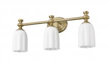 Infused with warmth, a modern gold finish instantly elevates the look and feel of a modern three-light vanity fixture. Its oval wall plate and decorative arms and flourishes create a refined ambiance, while opal etched glass ensures diffused illumination for all your daily tasks and beauty rituals.