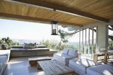 Made of aluminum and boasting a Black coastal finish that can stand up to harsh coastal environments, the Tiberius series of outdoor lanterns features an elegantly scrolled arm and flared detailing at the cap. Lightly seeded glass adds a transitional touch