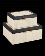 Gaborone Box on Stand | Off White | Brown | Antique Brass (12133)